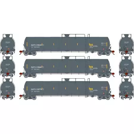 - Separately applied walkway platform, manway, outlet, ladders, brake rigging detail, safety rail supports and tank saddles